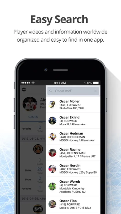 With SportContract Analytics you will have all player videos and data at your fingertips - easy player search, watch whole games or game events!