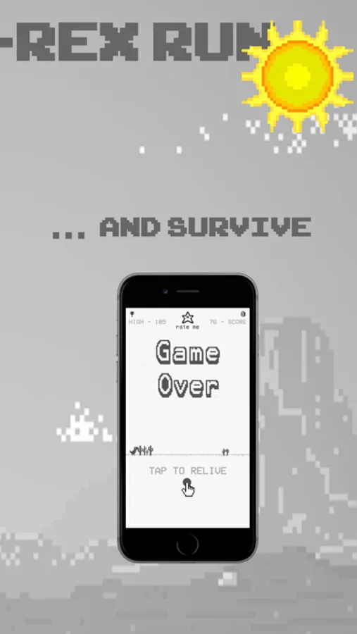 Just like you see in Google Chrome web browser when the Internet is gone. In this free fun game, you guide the cute poor little t-Rex jumping over cacti in an endless desert. The further you go, the better.