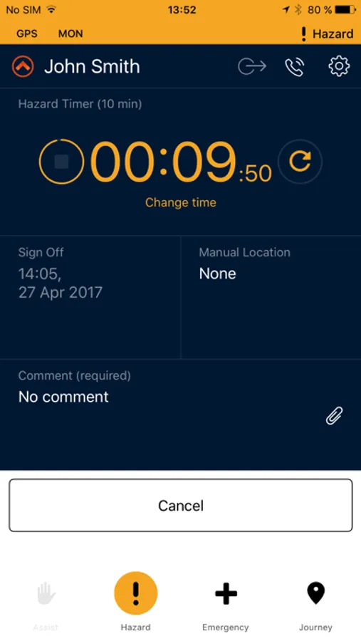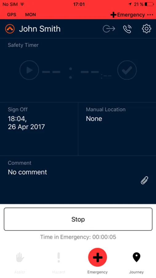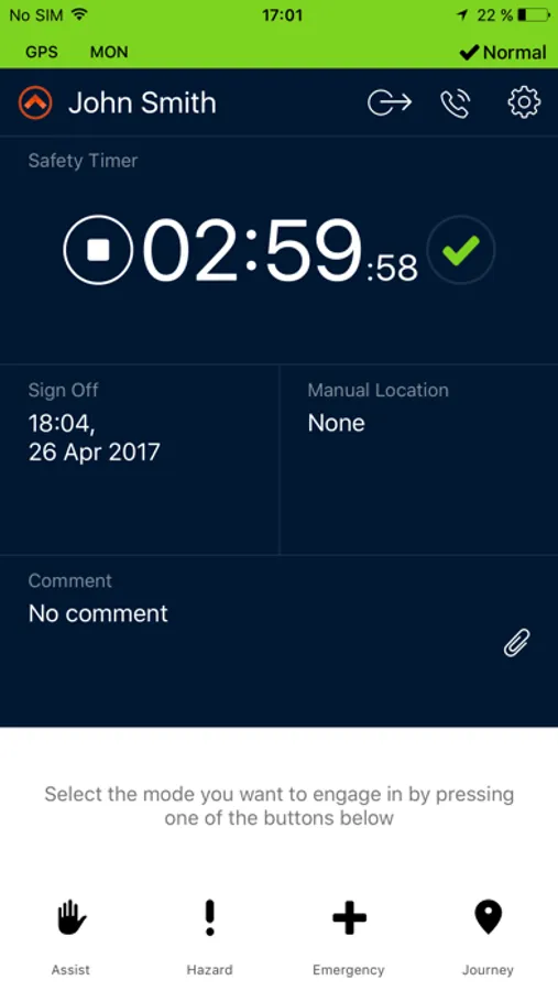 The Sign Off timer runs throughout your shift. It is completely configurable and can be changed depending on the circumstances. The application notifies you when your shift is about to end, and triggers an alert if you are overdue.