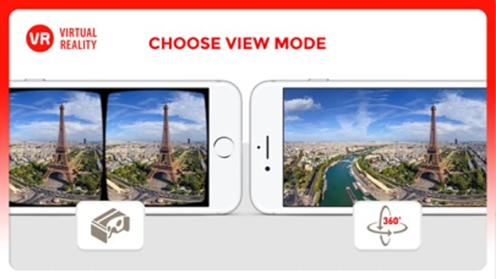 You can choose from two different viewing options: either the viewer mode, by placing your device in the visor, or the full-screen mode which enables you to explore the photo without using the visor.