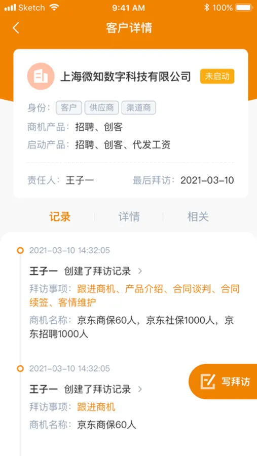 在手机上即可实现从商机到客户全阶段拜访。包括计划拜访、位置打卡、照片上传、填写拜访记录等。帮助销售管理者跟进过程可视化,量化销售人员每一个动作