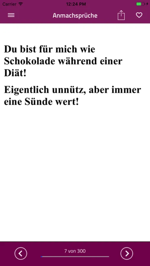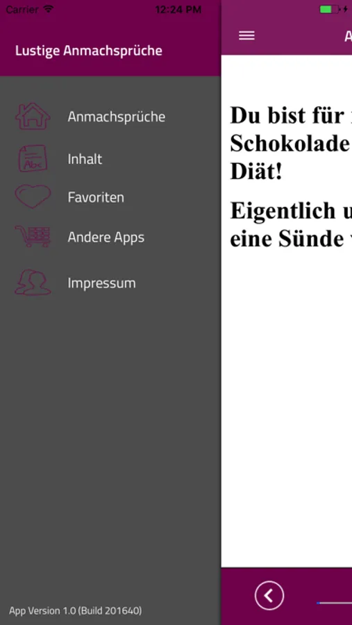 Mit dieser App gibt es 100 lustige Anmachsprüche, die garantiert NICHT zum Erfolg beim anderen Geschlecht führen, allerdings garantiert für einen Lacher sorgen werden!