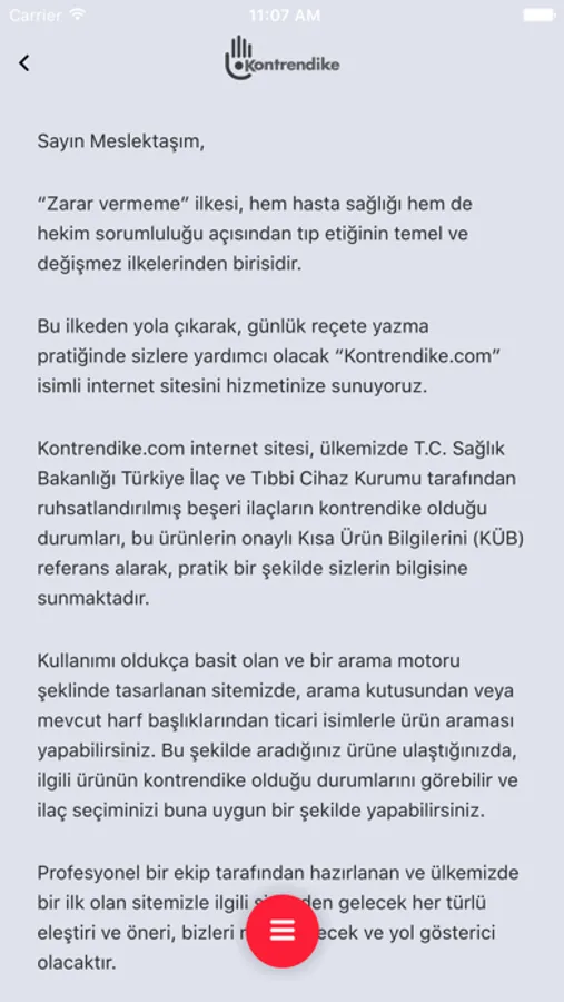 Bu ilkeden yola çıkarak, günlük reçete yazma pratiğinde sizlere yardımcı olacak “Kontrendike” uygulamasını hizmetinize sunuyoruz.