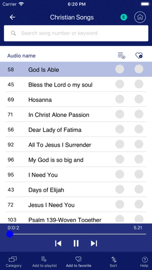 * Play list, Favorite songs and audio for prayers.