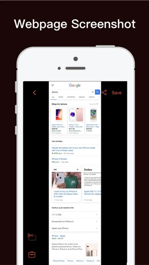 Grab URL link from your browser, one-tap to capture all content in entire page, create full page snapshot and save to your Camera Roll so you can edit, transfer and share from there.