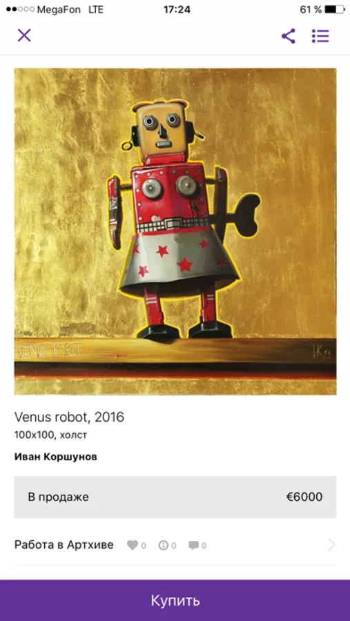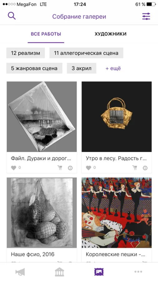 В приложении четкая структура, удобная навигация и минималистичный дизайн с акцентом на работы, которые могут украсить вашу личную коллекцию.