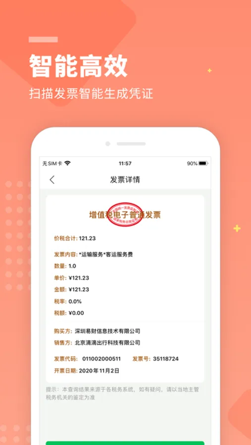 扫一扫发票,就可以智能生成凭证,高效工作不加班