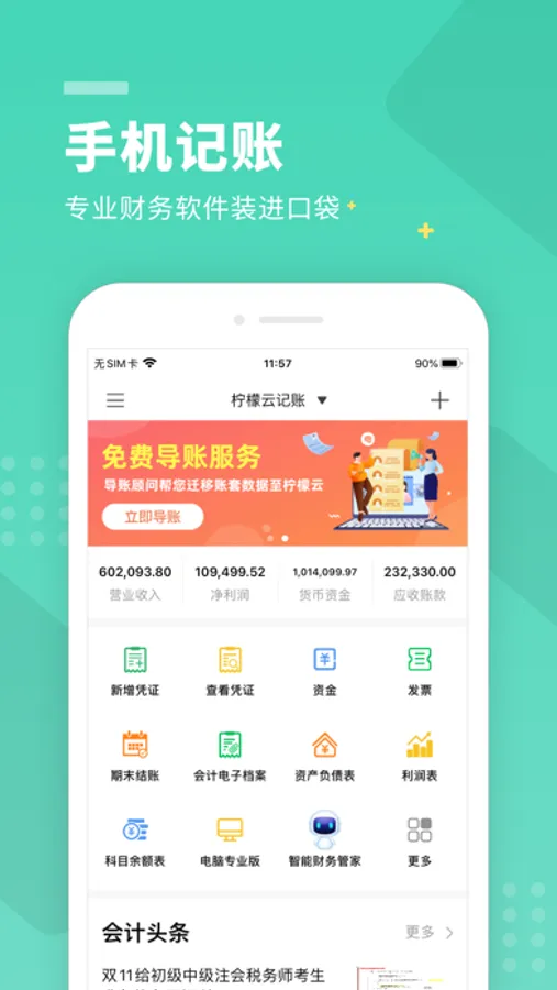 柠檬云财务APP是一款超300万家企业使用的专业财务记账软件
