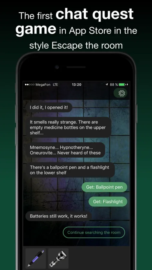 The game is taking place in the format of a monologue of the main character who describes all what is happening to him. Besides, he can find and use the items and enter the codes where needed.