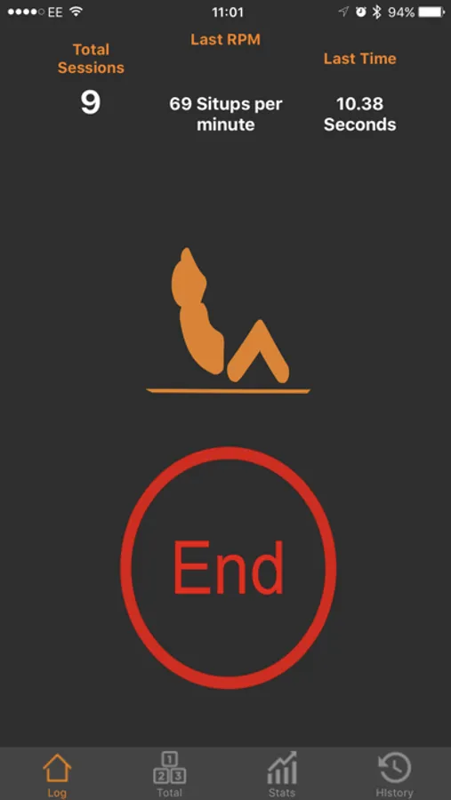 3. Hit End and log the number of situps