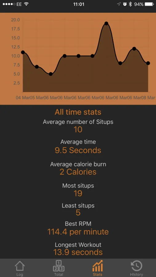 Love stats? We have all the stats you need to look back and track your situp sessions.