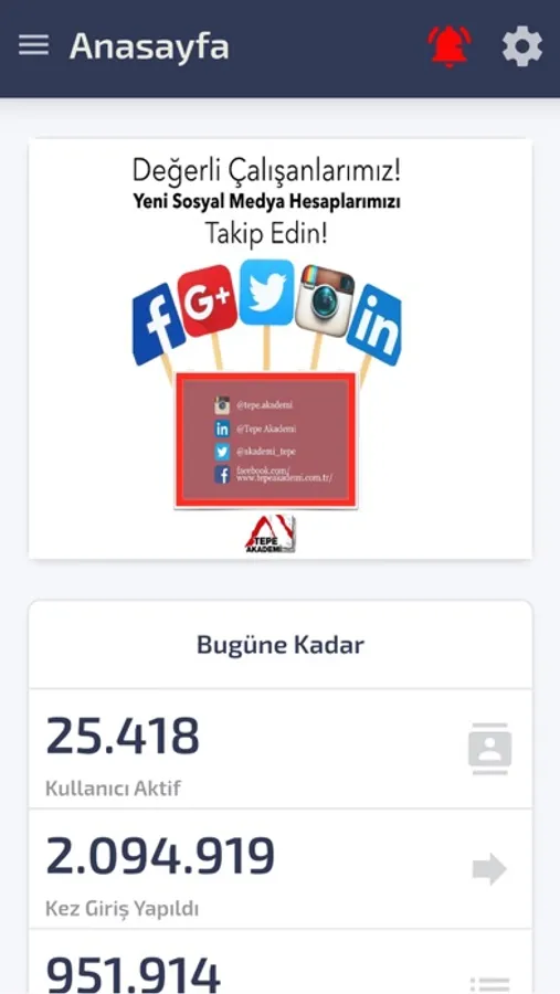 Mobil uygulamanızı hemen indirin! İçerikler yalnızca Tepe Grubu Şirketleri çalışanlarına açıktır. TepeAkademi kullanıcı adı ve şifrenizi girip kullanabilirsiniz.