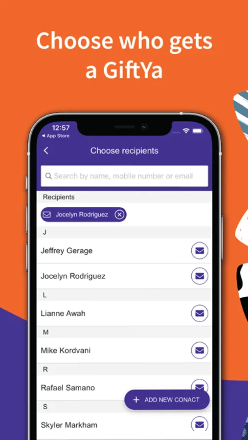 Choose from almost any merchant, select the amount you want to give, personalize your GiftYa with a photo or video and send it to your recipient’s phone within seconds.