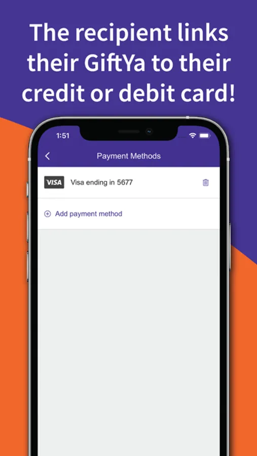 Link the GiftYa you received to your credit or debit card in seconds, purchase as you usually would, and your account is credited the amount you spend until the GiftYa is completely used.
