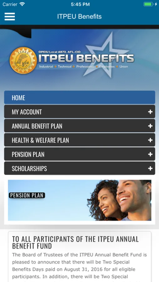 The ITPEU Benefits app provides a quick and easy interface to contact the benefits program, links to funds websites (erisa systems) as well as gain access to information and updates from the ITPEU Benefits website.