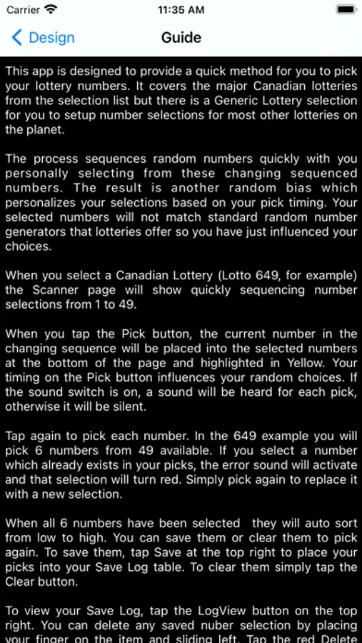 The app allows you to quickly select the required number of lottery numbers using fast sequencing random numbers. Your selection also inserts a timing randomness which changes the random selection process from standard processes. You have created your own variability with this new random selection.