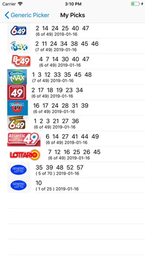 The lottery selections are currently major Canadian lotteries but the Generic Lotto can be setup for most lotteries in other countries with ease.