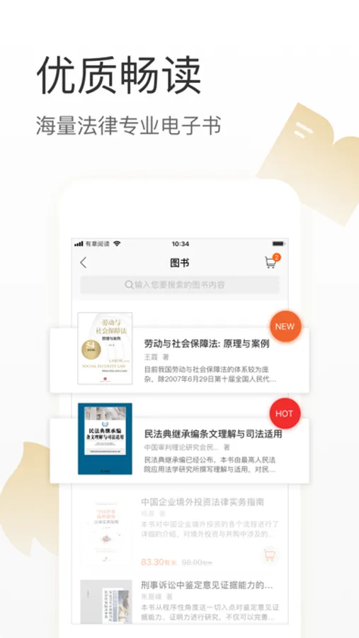数千种法律专业电子书,内容涵盖法律释义、学术、实务、教育、考试、普法、行业报告、人文社科等领域,支持全文本检索、试读、划线、笔记、分享和复制等功能。