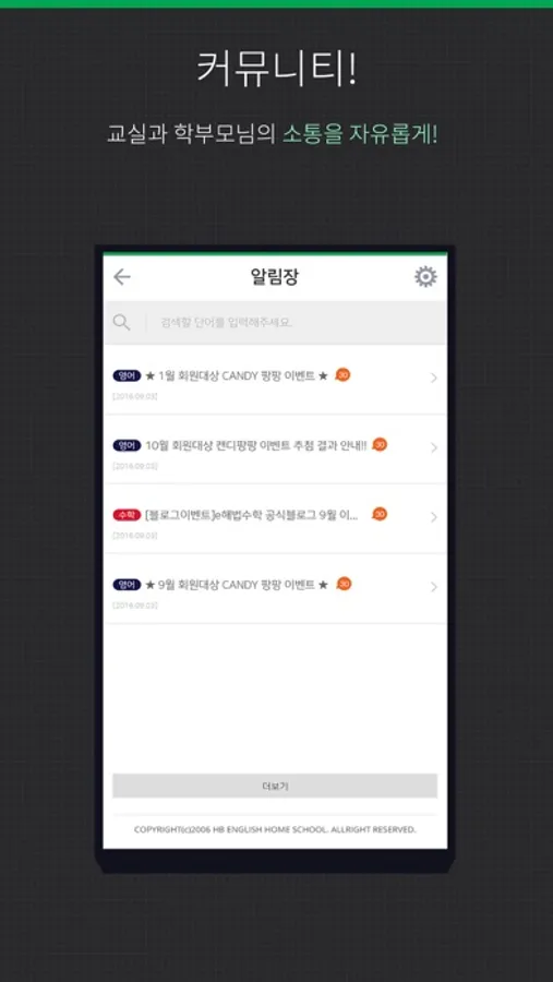 또한, 교실에서 제공하는 알림장과 선생님 학부모님과의 소통할 수 있는 커뮤니티를 제공하여 자녀관리 뿐만 아니라 교육정보도 얻으실 수 있습니다.