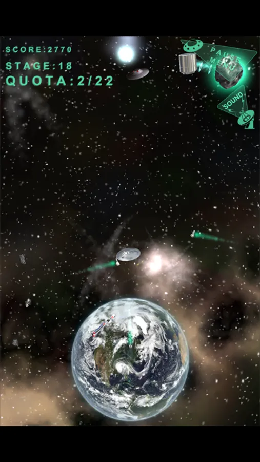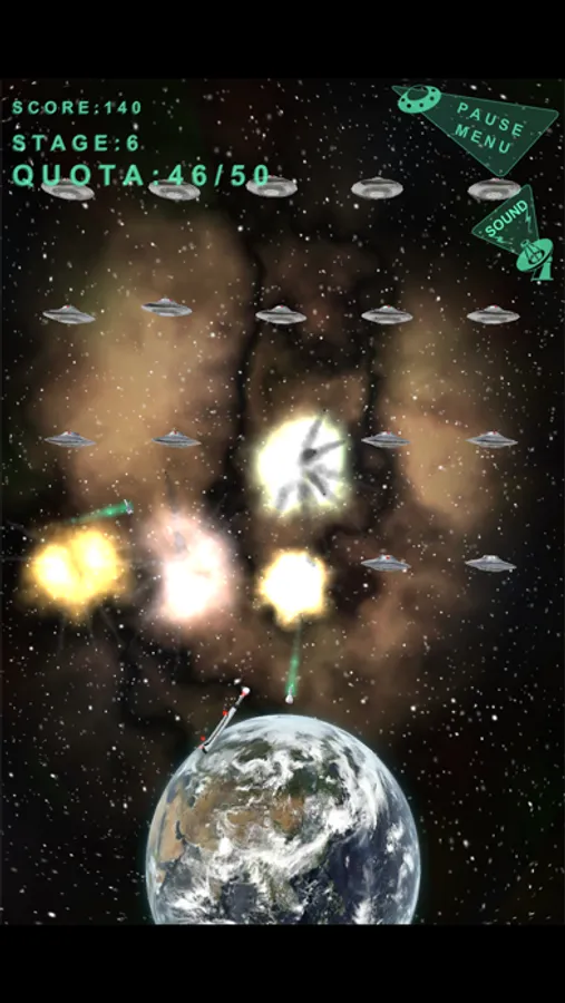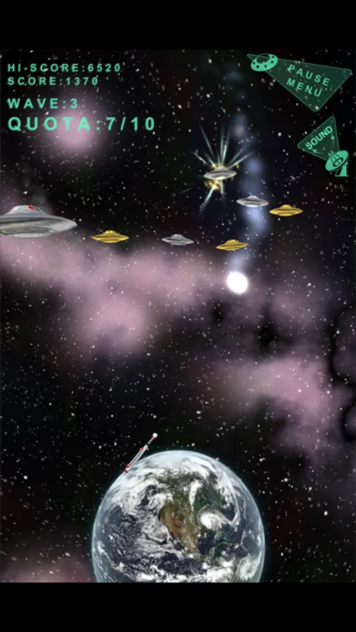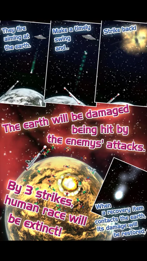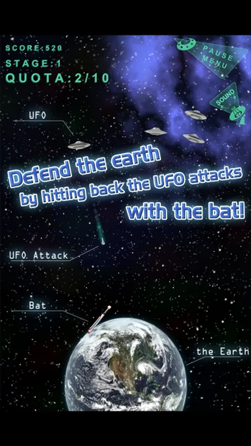 The alien UFOs fire at the earth. You hit back those attacks with the bat, and defeat them.