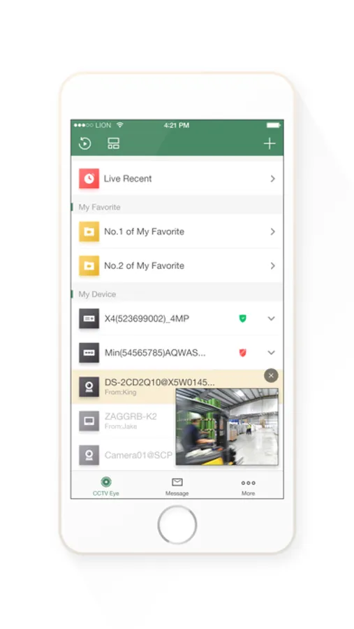 The CCTV Eye app is designed to work with DVRs, NVRs and IP cameras which support Cloud P2P function. It allows you to live view your cameras remotely. All you need to do is creating an account and adding device into the account, then you can enjoy the real-time video from cameras on a global scale. It also allows you to play back recorded video to search every milestone of your life. When motion detection alarm of your device triggered, you can get an instant message notification from Guarding Vision app.
