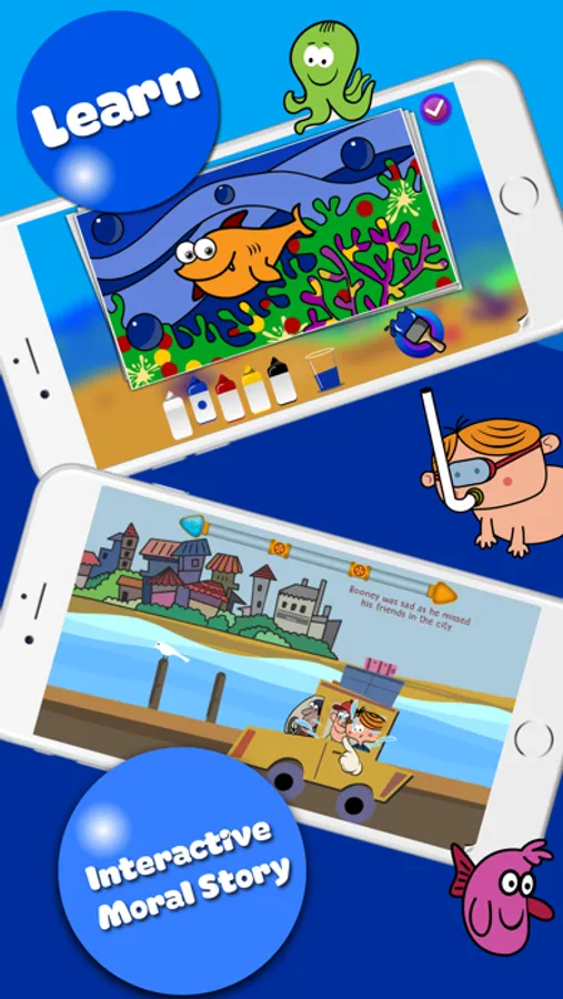 - Personalise your Aquarium (Home Screen) by colouring all the Sea Animals