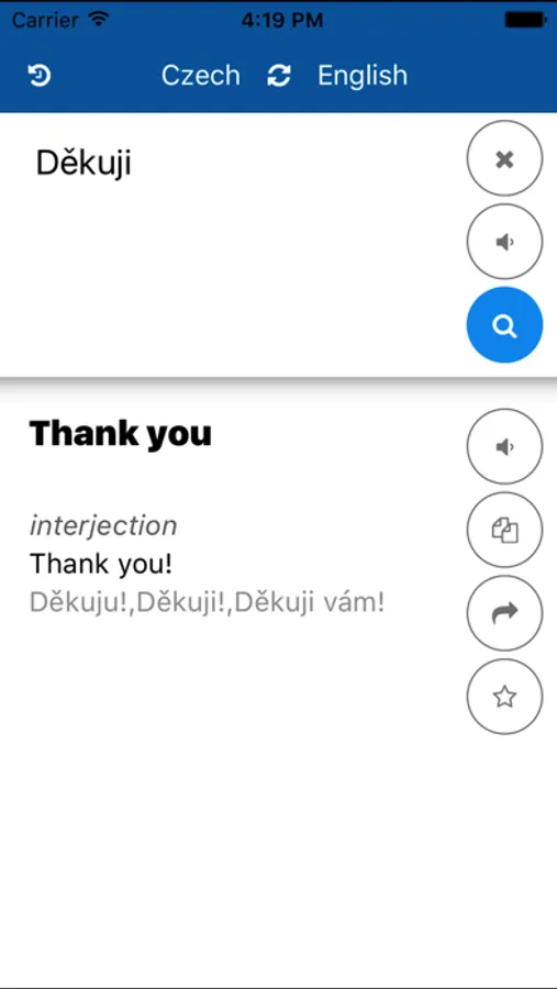 This app can easily translate words and sentences will be translated from Czech to English,and translated from English to Czech.