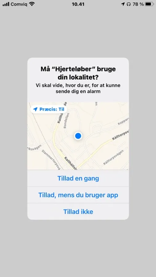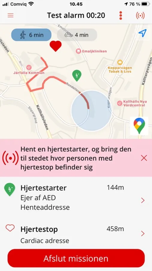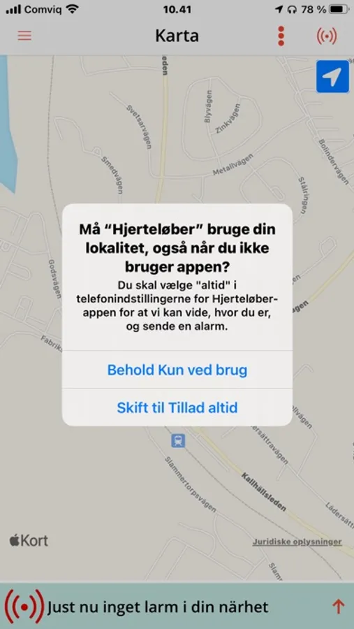 Under en alarm anvender Hjerteløber-app'en kontinuerligt GPS-positionering, som kan mindske batteritiden.