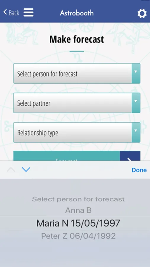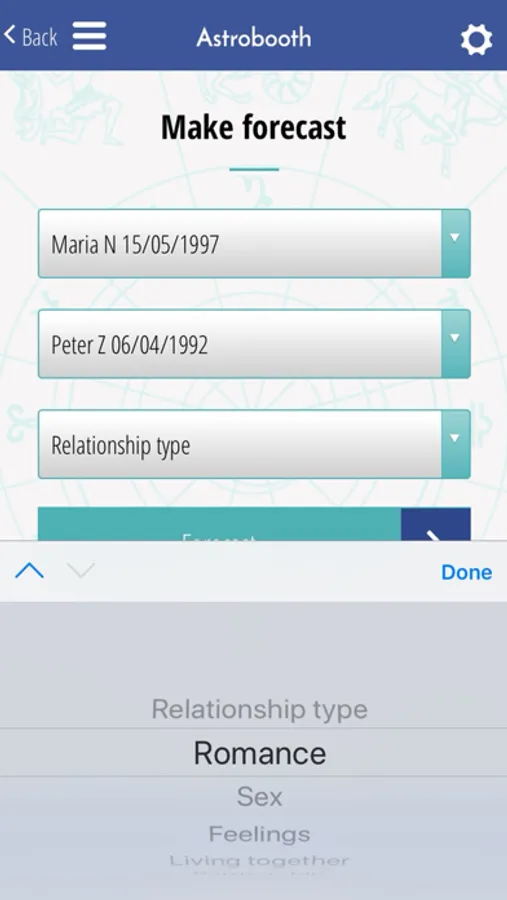 Every relationship has its peculiarities, energies, and purpose. "Astrobooth" interprets them, what you have to deal with and how to make the best of a given situation. This happens through a forecast, in which all the significant planetary aspects that are affecting your relationship are featured. Each reading is personal - you decide for who, when and what type of relationship you'd like to read about. This unique rapport is the compass guiding you through the state of your relationships, and where they can ultimately lead. The number of aspects shows the strength of the relationship according to the stars, while the magnitude shows how much attention should be paid and how much they are felt. The forecast can also give you a holistic view of what kind of dynamic to expect if you've only recently met. This can be acquired once you've read the majority of the interpretations. You can choose to receive a reading about as many different relationships as you like, amongst which we include the most common and significant types. These readings can be yours for the small sum of €0.99,or with a number of promo packs available as well.