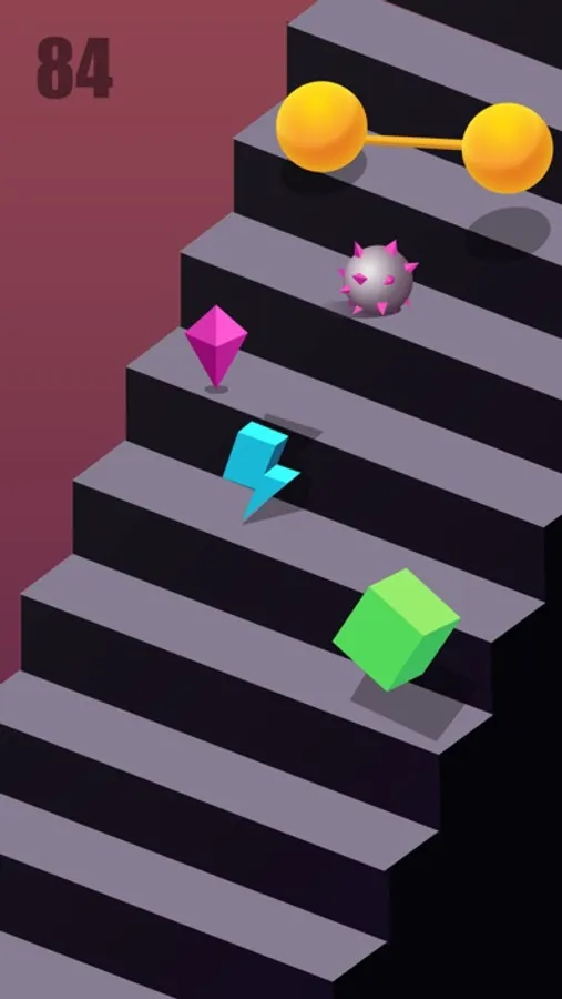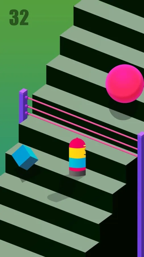 Climb the stairs while dodging the various shapes and objects that are tumbling down at break neck speed. You have the ability to move left, right and upwards, hopping as you go and navigating the perils and danger that surrounds you.
