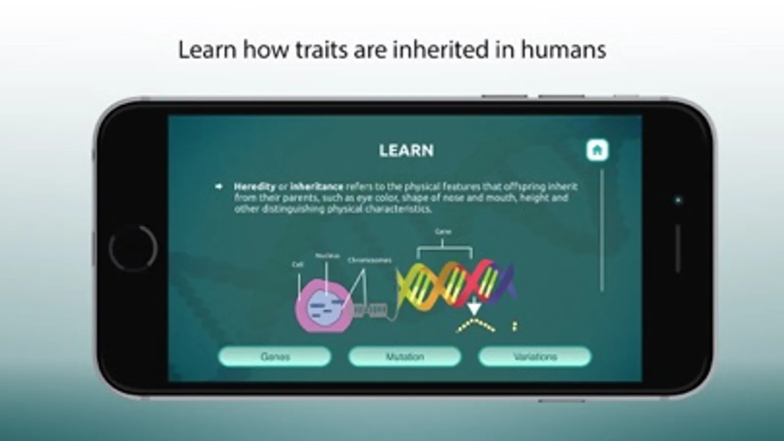 This educational application helps students understand and learn about epigenetics, Inheritance Biology, genetic model, human genome, genetics and heredity in an easy and engrossing way.
