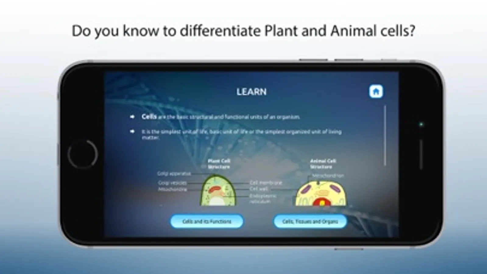 This educational application helps students understand and learn about Biology Cell Structure, plant cell structure, animal cell structure, human body organs, cell tissue, cell biology, organ system in an easy and engrossing way.