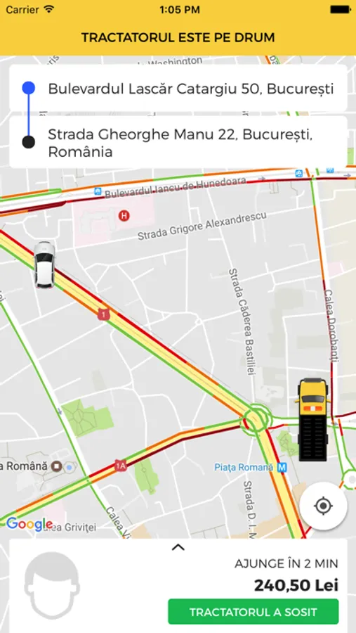 • Vizualizarea în timp real a traseului tractatorului care ajunge către tine