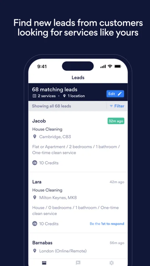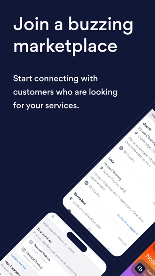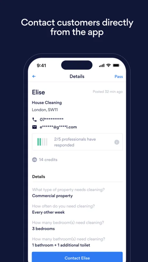 Use this app to receive customer requests wherever you are. When you see a job you’d like to pitch for, introduce yourself with a tailored message and call them directly – straight from your phone.