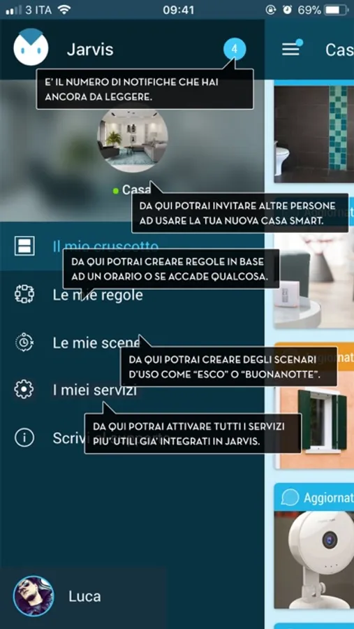 Con Jarvis, puoi da subito controllare telecamere, tapparelle, elettrodomestici, termostati, sensori, luci, consumi e molto altro.