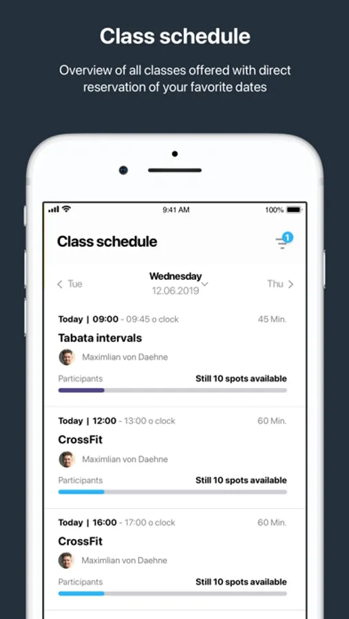 No need to call, no need to come in person - if you want to book a class with a limited number of participants, an EMS or personal training appointment, you can do so conveniently via the app. Simply select a service, set an appointment and nothing stands in the way of your training. If something should come up, you can of course make changes at any time - at the touch of a button.