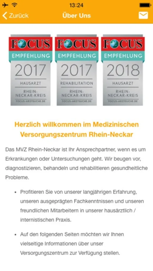 Das Medizinische Versorgungszentrum Rhein-Neckar gibt es jetzt auf Ihrem Smartphone. Unser MVZ - RN ist eine Fach- und Hausärztliche Praxis mit den Schwerpunkten Innere Medizin, Allgemeinmedizin, Kardiologie, Notfallmedizin, Proktologie, Schlafmedizin, Sportmedizin, Stoffwechsel- und Naturheilverfahren. Mit dieser App finden Sie Wissenswertes zu unseren Gesundheitsthemen.
