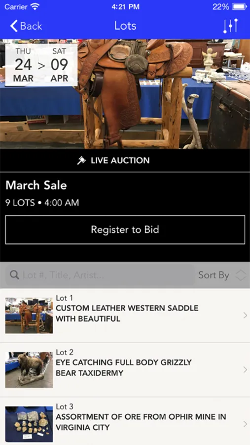 - Follow upcoming lots and receive push notifications to ensure you never miss a chance to bid