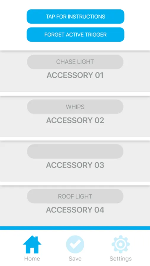 5. Tap the 'Settings' icon to customize the names of your Trigger connected accessories. Tap 'Save' to save the customized names.