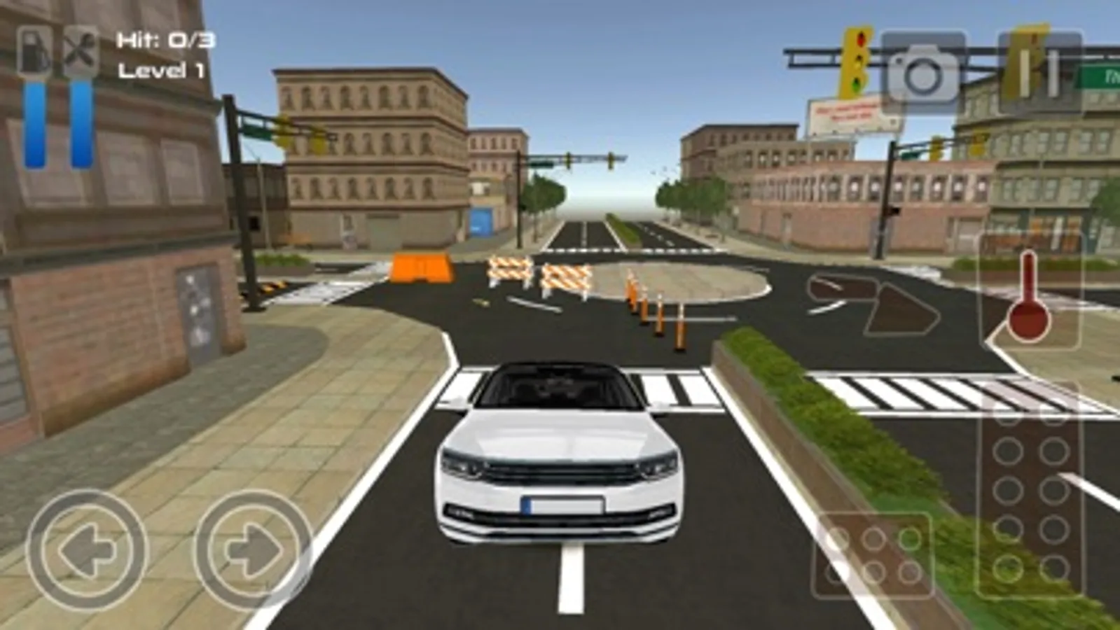 Control your car with an steering wheel, acceleration and brake pedals.