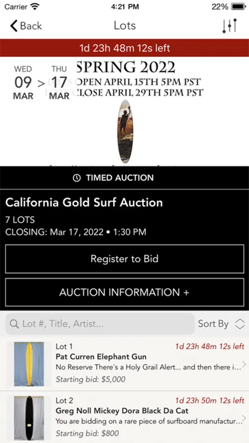 - Follow upcoming lots and receive push notifications to ensure you never miss a chance to bid
