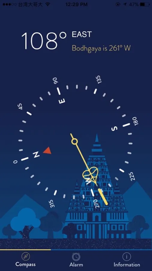 Bodhgaya Finder is a simple application that finds the direction of Bodhgaya from any location in the world.