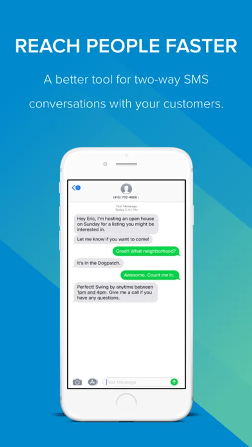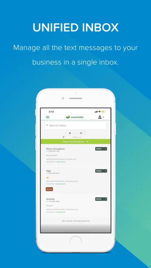 Tired of giving out your personal number to customers? When you sign up, we’ll give you a new unique Avochato phone number. When anyone texts that number, their messages will appear within the Avochato app. Reply from the app, and they’ll receive your response as a text message from your Avochato number.