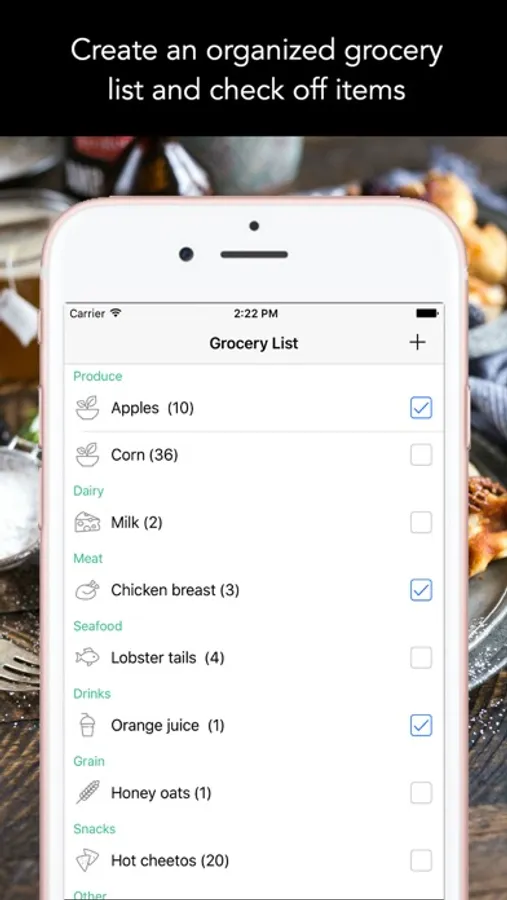 Create your own grocery list with visual checkmarks to manage what you have already purchased and what items you need to buy.