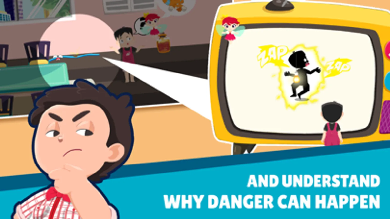 "Safety for Kid - Finding danger“ aims to address such concerns. This game for kid deals with different safety issues children encountered at home, such as playing with electric wire, slipping on the floor, bumping on open window corners etc. Each of these dangers is well explained by animations and audio material helping them understand issues and learning about right reactions. The operation of this safety game is simple and child-friendly so kids can easily navigate the different scenarios.