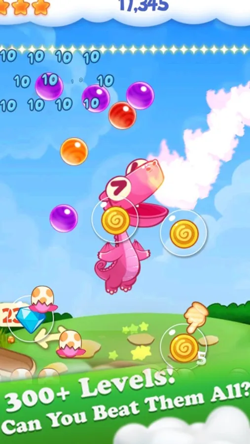 Make combinations of 3 or more bubbles to make them burst. Clear all the bubbles to level up.