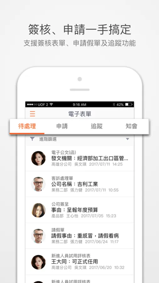 2.百張表單行動申請、簽核、查詢,運籌帷幄於千里之外