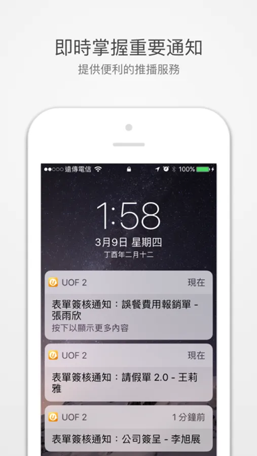 1.支援手機訊息即時推播通知,隨時掌握辦公室脈動