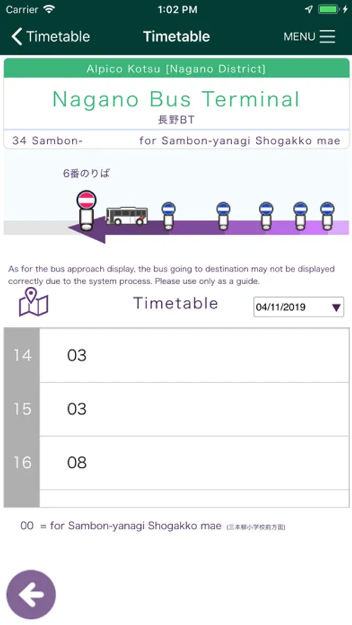 ①長野県内の公共交通(バス・鉄道)について、出発地と目的地を選ぶだけで簡単に経路や運賃、所要時間および時刻表、バスロケーション情報(バスの位置情報)を調べることができます。