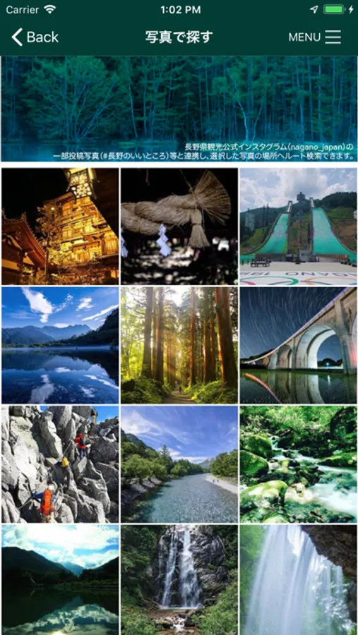 ③長野県観光公式インスタグラム「nagano_japan」で紹介した写真の場所に行くルートが簡単に検索できます。